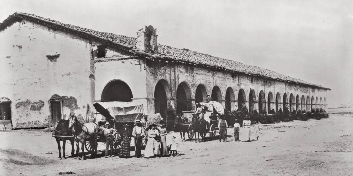 Picture yourself as a wide-eyed time traveler stepping into the bustling mission compound in what is now Mission Hills. Thick adobe buildings surround a grand quadrangle, highlighted by the famous long convento (priests’ residence) with its stunning 20-arch colonnade—one of the longest and most beautiful in all the missions. The church features arched doorways and colorful decorations. Outside, the grounds explode with life: enormous vineyards heavy with purple grapes for sacramental wine, orchards of figs, olives, peaches, apricots, and pears, plus thousands of acres of wheat, barley, corn, beans, peas, and lentils that made it one of the most productive missions in California.